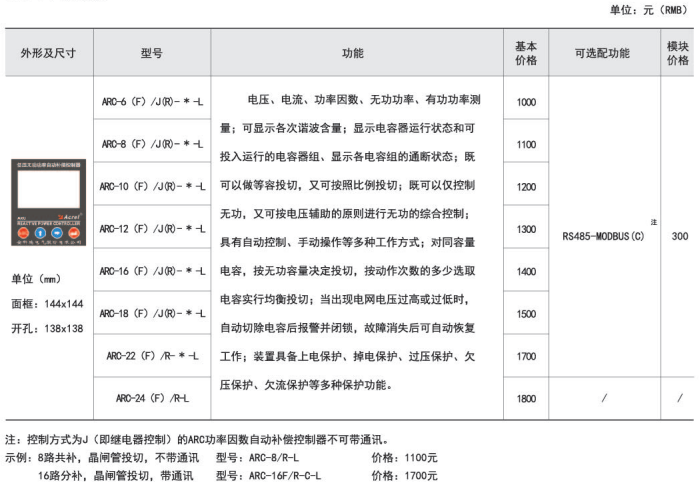 ● ARC液晶顯示功率因數自動補償控制器