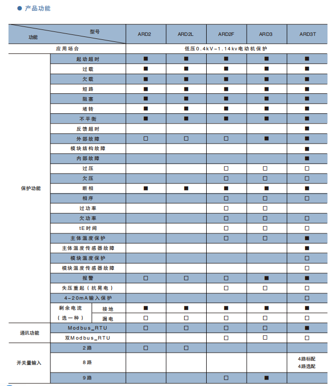 ARD3采用模塊化的產(chǎn)品結(jié)構(gòu)形式,包括主體(保護(hù)控制功能模塊)、互感器檢測模塊、遠(yuǎn)程顯示模塊。根據(jù)需要選配ARD3的功能模塊或附件,與接觸器、電動機(jī)起動器等電器元件構(gòu)成電動機(jī)控制保護(hù)單元,有遠(yuǎn)程自動控制、現(xiàn)場直接控制、面板指示、信號報警、現(xiàn)場總線通信等功能。適用于煤礦、石化、冶煉、電力、船舶、以及民用建筑等領(lǐng)域。